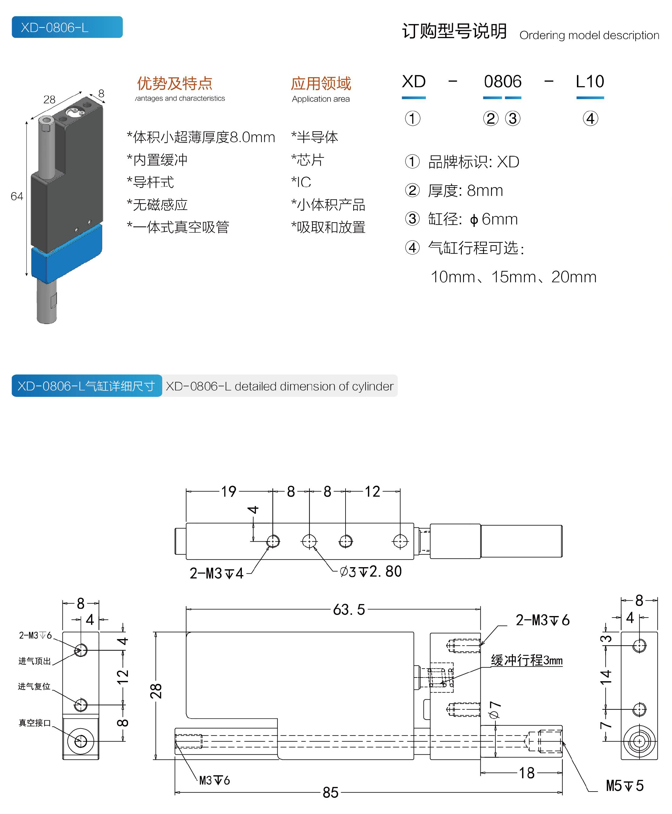 高精度超薄氣缸 卡片氣缸XD-0806-L刀片氣缸